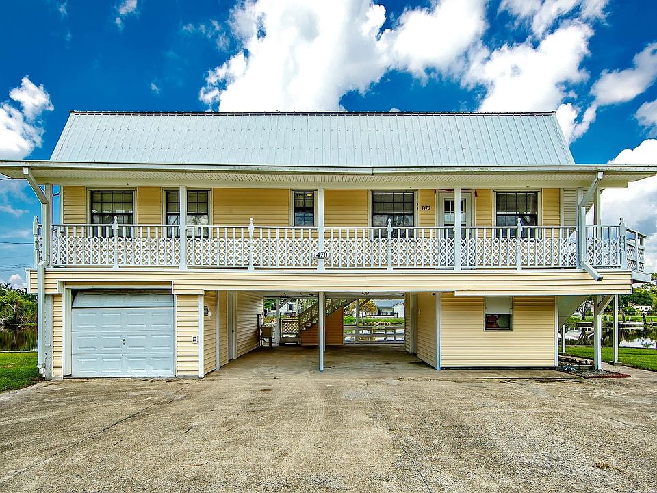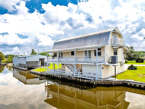Improved Price!!! Experience the best of bayou life from this charming two story 3-bedroom, 2-bath Acadian-style home/camp on on Bayou Terrebonne. The primary bedroom is on the main level of the home (2nd floor) and the other two rooms are upstairs (3rd floor) since the home is raised. With over 200 feet of bulkheaded waterfront, this property is an oasis for anyone who loves to be on the water. You will have direct access to the Gulf of America. The property is also located within the parish lock system. The welcoming front porch leads into an open-concept living space, perfect for entertaining guests or simply relaxing. The real highlight beside the view of the water is the incredible detached 30 x 40 boat shed/workshop/RV garage, which includes a covered boat dock and a convenient 2 ton boat hoist to lift your boat to it's trailer to store your vessel securely indoors. The property offers a larger, extended lot, providing more space for outdoor activities. You'll also find a double carport, a single garage, and plenty of driveway parking. In the past 20yrs the home owners have never endured any damage to the home and/or boat house!!!! Security Cameras to be removed.