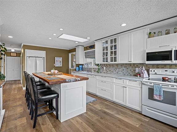 Ocean viewsCozy single-level livingNew floorsCrown mouldingsWarm neutral paletteTiered cedar deckWood-burning fireplace
