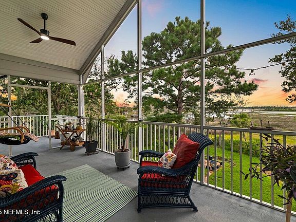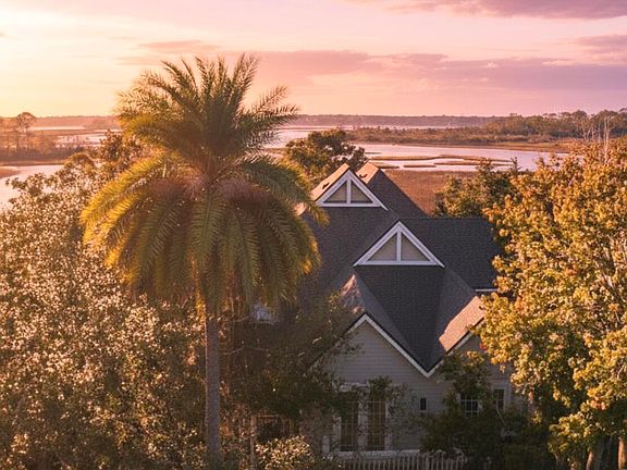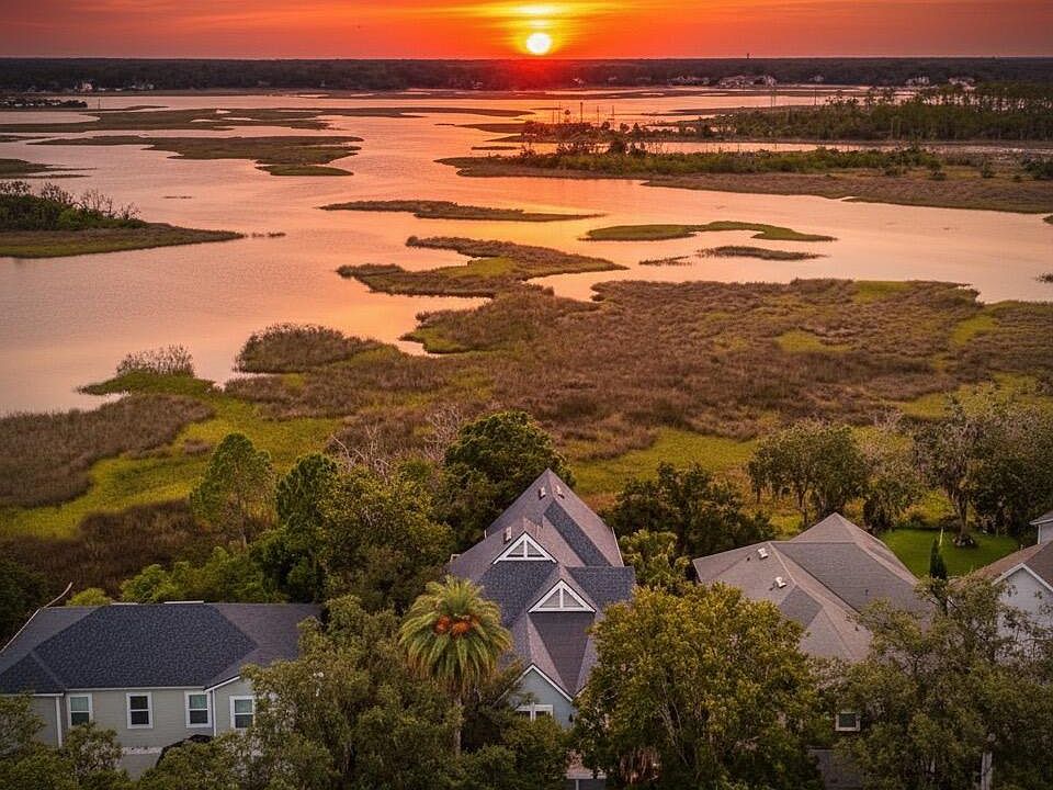 Experience serene evening sunsets and spectacular marsh vistas, where nature's beauty becomes the backdrop for your every moment—peaceful nights, year-round. Step inside this stunning custom home and be greeted by impressive 12-foot ceilings, a bright and open living area, and dramatic windows paired with large elegant doors, all framing uninterrupted views of the marsh. Every detail is designed to showcase the natural splendor just outside, elevating everyday living to a new level of comfort and luxury. This home features it all, including a brand NEW roof, HVAC, and deck for peace of mind. Perfect for indoor-outdoor living, unwind on your wrap-around screened lanais - one off the main floor, and another private retreat from the oversized owner's suite upstairs. Vaulted ceilings elevate the primary suite, which features a spa-inspired garden bath, dual shower heads, and serene marsh panoramas - a sanctuary to start and end every day.