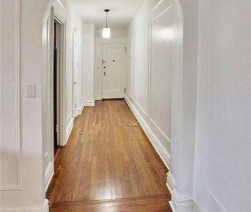 Spacious and well-maintained 1BR/1BA in the classic Bronxville Terrace building. This quiet, beautifully landscaped complex features a front garden, two large pine trees, ample outdoor lighting, and superb daily lawn maintenance. The unit offers high ceilings, crown molding, archways, and all new double-hung, tinted windows with 40% noise reduction. Three closets with double hanger bars provide excellent storage. Freshly painted and cleaned with upgraded bathroom. Original hardwood floors throughout. The oversized bedroom fits a California king. Apartment faces the peaceful backyard. Stove and refrigerator (3 years old) included As-Is.