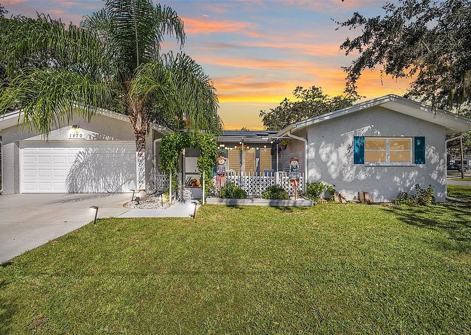 Welcome to your FULLY UPDATED and MOVE IN READY 3 bedroom | 2 bathroom| 2 car garage corner lot home located just FIVE minutes to Dunedin, 1.5 miles from TD ballpark, a mile from Pinellas Trails and MORE! Before even entering the home you will be pleased with the well maintained curb appeal, double driveway (2021), roof (2020) WITH solar panels (2021 will be paid off at closing and has average electric bill only $35-$60 a month!), and your very own front patio which will be the perfect spot to sit while drinking your morning coffee. As soon as you step foot inside this open concept home, you will fall in love with the high vaulted ceilings with rich exposed beams in the large living room along with three oversized windows pouring in plenty of natural light. The STUNNING spacious kitchen is an absolute DREAM! Newly renovated with soft close shaker cabinets, high-level granite countertops, BEAUTIFUL glass backsplash, matching Samsung stainless steel appliances (2020), and a large attached island that not only gives the chef of the home plenty of space for cooking, but also doubles as a bar top for additional seating when entertaining. An attached separate dining space makes this the PERFECT home for family gatherings. This split floorplan home has a true Master Suite with barn doors opening up to an oversized walk in closet and it's very own ensuite bathroom, featuring double sinks and a refreshing rainfall shower. Additionally, this modern home has two more generous sized bedrooms, an updated guest bathroom featuring double vanity, separate inside laundry room, double pane hurricane proof windows, interior two-panel doors, and a large 2 car garage! This home truly is turn key ready and is in a prime location that has NO HOA and NOT in a flood zone! Virtual Tour: https://www.aryeo.com/v2/a33499c7-10f7-4e54-95bf-5c35e7379411/videos/125598