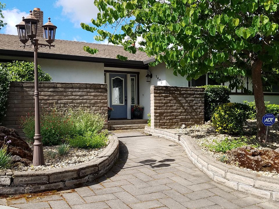 Spacious home with many amenities. Courtyard entry, Wine closet,, 2 car att. gar., RV gated area & fenced bk yard. Many out buildings for the handyman or hobbyist. Sep. building has Sauna and two workshops w/power. Mature landscaping & patio off Family room.Two sided fireplace in liv. room & fam. room. Kit. has Corian counters, lg. pantries, pull out shelves. Central vac