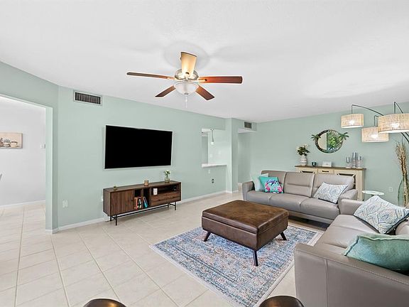 Modern style pet friendly (small) resort style condo near the beach, shopping & restaurants. Spacious 1300 sq ft unit with private screened balcony overlooking beautiful greenspace. Light and bright! Large open kitchen with updated cabinets , granite tops, deep stainless sink and breakfast area that opens to your private balcony. Oversized living room also has a sliding glass door that opens to the outdoors for great breezes in the winter. Primary bedroom offers lots of space and a walk-in closet. Primary bath has a double sink with granite tops. Split bedroom plan great for privacy. Stacked washer/dryer. Gated complex offers 2 pools, 2 tennis courts, gym, pickle ball, clubhouse and 2 car parking (one assigned space very close to the unit). Reasonable maintenance fees-Move-in condition!!