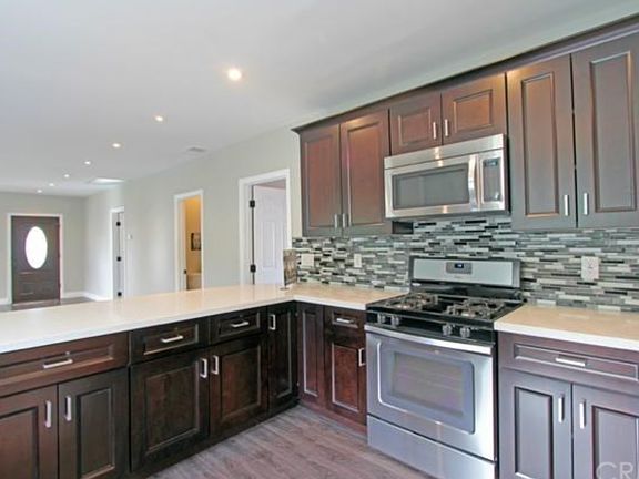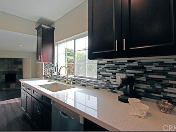 3 bedroom/2.5 bath with private yard. No carpet anywhere in the newly renovated, open floor plan home. Contemporary, dark hard hewn-look laminate flooring is anchored by 4" gleaming white routed baseboards. The dove grey palette in an eggshell finish complements the glass back-splash rising above the sparkling white quartz counter tops by the stove and sink. The kitchen has ample mahogany colored new cabinets with brushed nickel hardware. Cast iron tubs with new tile enclosures. Sunken family room with wood burning fireplace is cozy and opens through french doors onto a large back concrete patio and into spacious side yard. Master bedroom size 11 1/2 x 14). Washer and dryer included, dishwasher and all appliances (stainless steel). 2 car parking spaces (driveway). NO GARAGE. 2 outdoor sheds for storage (Suncast 6' x 4' Vertical Shed). Please note central air conditioner in not working 100%. Master room has a ceiling fan, main entrance living room has a ceiling fan and an additional ceiling fan in one of the bedrooms. Family owned home that has been well loved and cared for. Schools near by: Poly High, LBCC College, Whittier Elementary. Shopping Outlets, Aquarium, LB Convention Center, The Pike, Queen Mary, convenient markets (CVS) and more. Currently occupied. We'd be happy to schedule a viewing for you, but to proceed with the tour, please complete a rental application first so we can verify your qualifications. Any questions, please do not hesitate to contact. Thank you. Owner pays only water. Renter is responsible for electric, gas, sewer and trash. One or two small pets are allowed with a deposit. No smoking is allowed. Month to month rent. Rent is due on the 1st day of the month (additional charges if rent is not received on the 4th of the month). If renter loses keys, a $50 charge for new keys.