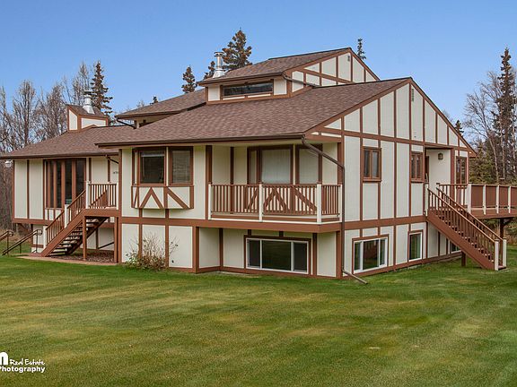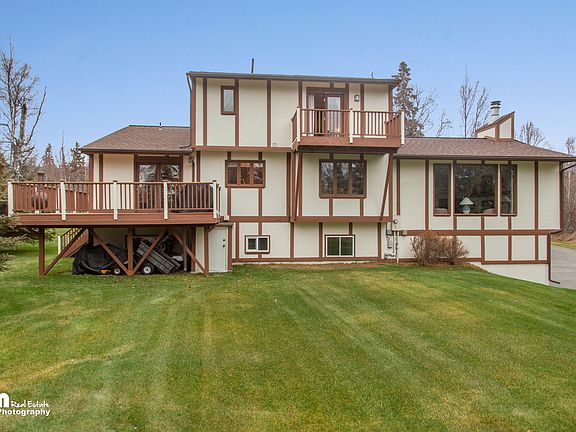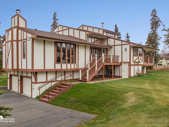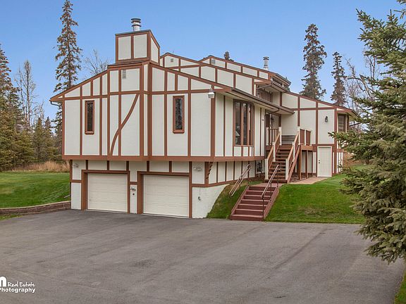 Tudor Style South Anchorage home, sits on a very private lot just under an acre. Features a complete mother-in-law with separate entrance. 4200 square feet, 4 beds, 3.5 baths, a completely remodeled main kitchen, master bath, and bedroom. No HOA. In the Equestrian Zone
