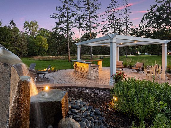 The exterior grounds are truly magical! The winding drive immediately creates a sense of grandeur with professional landscaping, extensive outdoor lighting, custom water feature, stacked stone fire pit and entertaining area with pergola that has automation to allow for protection from sun and rain. The setting of this home is truly breathtaking. Overlooking manicured lawn and pond, it is stunning! A peaceful retreat that offers serenity and space and yet only minutes to downtown Wayzata.