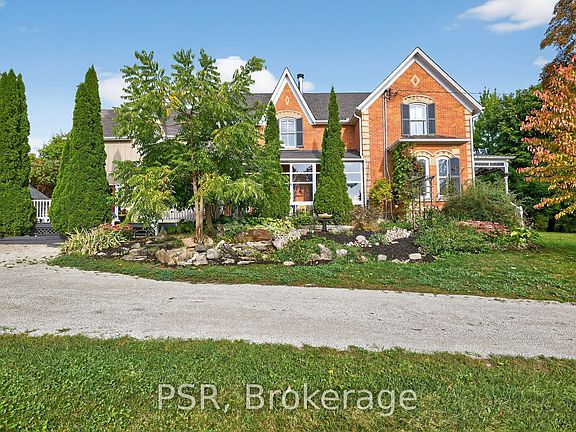 Welcome to your private retreat in the charming village of Cheltenham. Tucked away in scenic Caledon, this extraordinary property offers the best of country living with the convenience of modern amenities. Enjoy walking distance to the historic General Store, the Credit River, the Caledon Trailway, and the renowned Badlands. Within minutes you'll find the Pulpit Golf Club, Caledon Ski Club, local breweries, and cafés and all just 30 minutes from Pearson Airport and under an hour to downtown Toronto. Set on 1.4 acres this property presents the rare opportunity to create a multigenerational family compound. A stately tree- lined drive leads you to a historic residence built in 1862 framed by majestic chestnut trees, as old and storied as the home itself. Inside, over 3700 square feet of thoughtfully designed living space combines timeless charm with modern comfort. Geothermal heating and cooling ensure efficiency throughout with radiant heat on all tiled floors; while soaring ceilings and abundant natural light highlight every detail. The home features four generous bedrooms, three baths, a family room, a spacious kitchen, dining room/library, office/living room, and a versatile flex space perfect as a gym, studio, or creative retreat. Outdoors, the property exudes tranquility and elegance, from the landscaped pond and sun soaked solarium to the inviting front porch and towering cedars. The 200' of lot frontage opens up the possibility of lot severance. Every window frames a view worth savoring, offering a true resort-like experience with the warmth of home. This is more than a residence it is a one-of-a-kind historic masterpiece, where village charm meets understated luxury.
