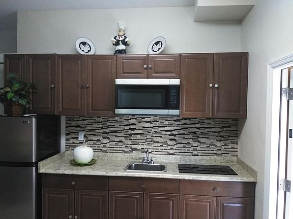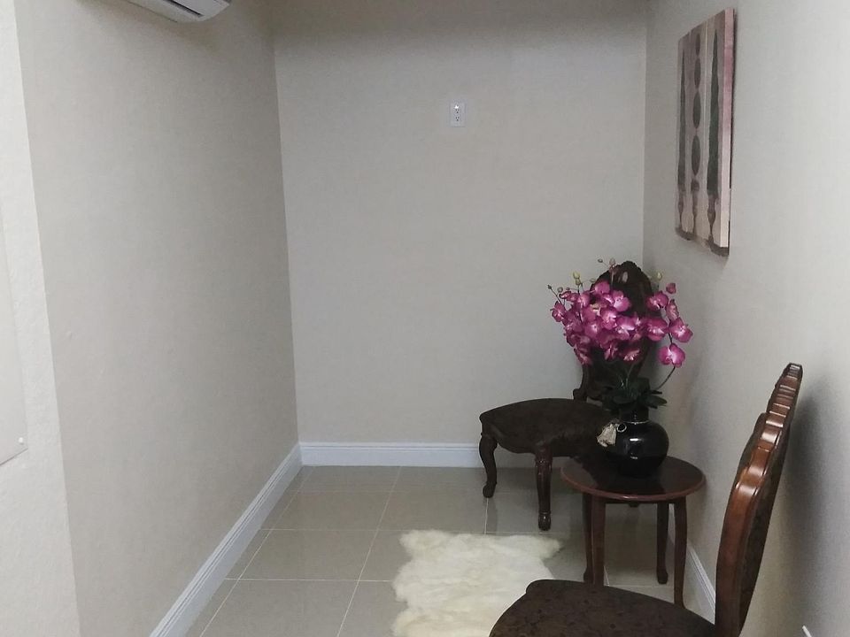 brand new apt for rent it has 1 bedroom 1 bathroom 2 closets a full kitchen with a in counter stove and 5 different cooking pans a very private entrance with a roof over the entrance door remote control air conditioning kitchen has lots of cabinets also porcelan floor all of this is included with the rent electricity water trash free WiFi 1 tv with netflex and also air antenna