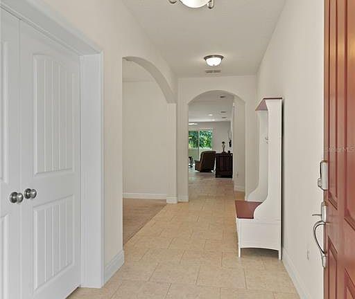 MOVE IN READY home in Winter Garden’s Summerlake community. Built by DR Horton, the “Englewood” floor plan features 3 beds/2 baths, an office/den, formal dining, family room, large kitchen, a 2 car garage, a covered front porch, a back patio with an extended concrete pad and NO REAR NEIGHBORS! The foyer welcomes you into the home with the den/office on your left with the formal dining room next to it. Walk further into the heart of the home to the kitchen that features custom Timberlake 36” cabinets with crown molding, with the microwave vented to the outside, stainless steel appliances with a new garbage disposal, microwave and fridge, a large island with a breakfast bar, a closet pantry, plenty of cabinet space and granite counter. The kitchen is open to the breakfast nook and spacious family room that has glass sliders leading to the covered and extended patio that has a gas line hook up. What a great space to enjoy your morning coffee or unwind after a long day! The owner’s suite is off the family room, features two walk-in closets, a sitting area and an en-suite bath with 2 granite top, “adult height” vanities, a corner soaking tub, a glass enclosed, tiled shower and separate water closet. The guest bedrooms are down the hall and share the guest bath with an “adult height” granite top vanity with two sinks, and a tub/shower combo. The laundry room is inside and includes a sink and is across from the door leading to the two-car garage that has storage racks in the ceiling. Beautifully maintained, additional updates include ceiling fans in every room, pendant lights in the kitchen, a new disposal, microwave and fridge. Summerlake features a lakefront clubhouse, resort style pool, walking trails, fitness center, dog parks, and the HOA takes care of the lawn! Conveniently located in the heart of Horizon West, minutes from great shopping, dining and Winter Garden Village. Make this beautiful home yours today!