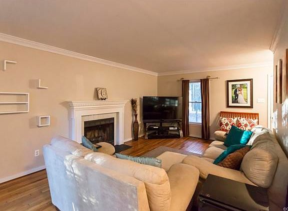Move in Ready 3 Bedroom, 2.5 Bath Home in Woodlake! Hardwood Floors sweep through the Family Room with Brick Wood Burning Fireplace...perfect for this winter season! Crown Molding and French Doors leading to your Very Large Back Deck with Fenced in, Level Yard. Open and Inviting Kitchen with Vaulted Ceiling and Skylights and Updated Light Fixtures. Enjoy meals overlooking your peaceful back yard in your eat in kitchen. New Stove, Dishwasher, and Tile floor. Dining Rooms flanks off the kitchen with ceiling fan, crown molding, and hardwood floors. Master Suite with Full Bath and Large Walk in Closet. Second and Third Bedrooms plus Full Bath. Affordable, move in ready, and amazing backyard and deck for entertaining! NEW HEAT PUMP AS WELL! Enjoy Woodlake's 14 Miles of trails, playgrounds, and award wining pools. Rent a pontoon, kayak, paddle board, or paddle boat. Community events throughout the year and Top Notch Schools! This home is perfect for Life on the Lake and Enjoyable Living!