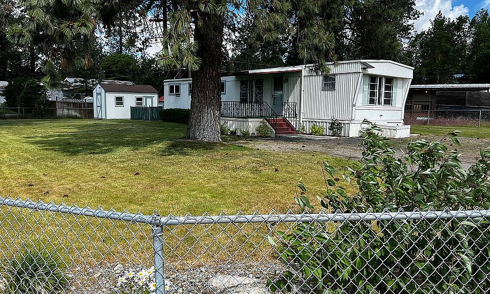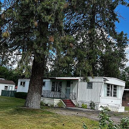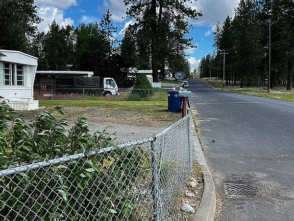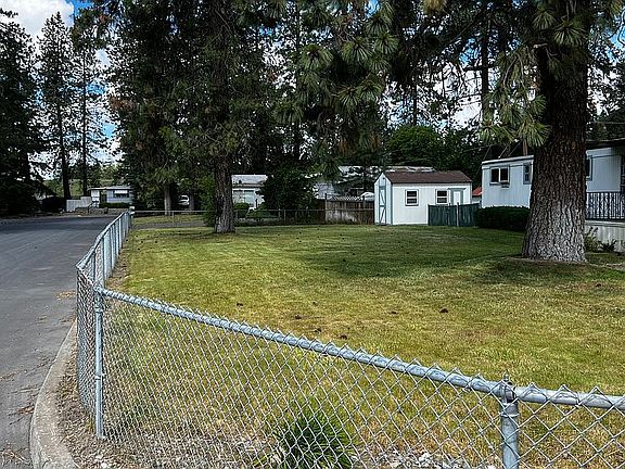 Two bedroom one bath with enclosed back porch older mobile home on very large fenced grassy corner lot with sprinkler system and large pine trees. View a vacant lot from front of house. Newer roof, some newer windows, newer flooring. Plenty of storage in The sheds in the backyard. Wall air conditioner. No dishwasher.