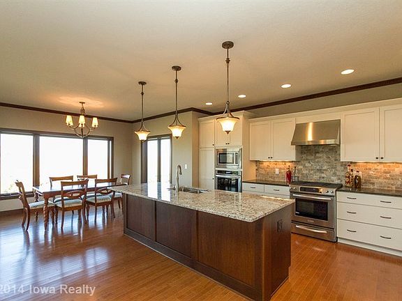 This home has an oversized 4 car side load garage! Low utility costs & tax credit w/ geo thermal heating & cooling. The large kitchen island over looks great room w/ stone fireplace & offset dining area opens to a covered deck w/ fireplace. Pearl & birch cabinets, stainless double ovens, warming drawer, stone backsplash, & hardwood flooring. Convenient mudroom w/ great built in lockers & closet. Spacious laundry room & bonus room for office, living, or music room. Owner's suite w/ beautiful windows, detailed ceiling, bubble tub, tile details & two walk in closets. Two more bedrooms share a bath w/ double vanity & a fourth bedroom has private bath. Lower level is great for entertaining or kids' area w/ wet bar & large family room/ gaming area plus a 5th bedroom & bath. Home has central vac, irrigation, & wired for security. Nice yard w/ top soil, landscaping, & privacy provided by trees-many pines. Neighborhood park