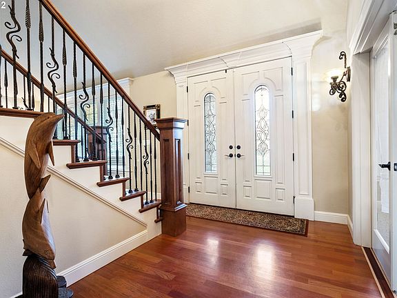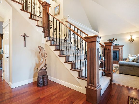 First Place Stunner! Spacious & grand, home features beautiful hardwood floors throughout the main level w/ striking inlaid details.Formal living room w/ fireplace + great room w/ additional fireplace & built ins, open to kitchen. Custom backsplash & island w/ bar seating & nook. Formal dining room & office/bdrm on main. Large primary suite w/ spa bathroom of your dreams! Plantation shutters in all bedrooms. Bonus room w/ closet. 2 beautiful decks, pristine yard w/ landscaping. RV parking.