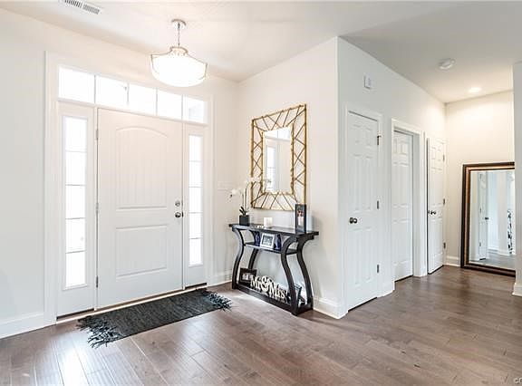 You are going to fall in love with this almost NEW home and its 4 bedrooms and 3 full baths. The home is situated on a large private lot in Collingtons newest section. When you walk up to the home you will appreciate the beautiful gray craftsman exterior. Upon entering the home you will notice the upgraded large plank flooring and the open concept floor plan. The kitchen has white cabinets with a gray herringbone backsplash. There are 3 bedrooms on the first level. The master bedroom is off the living room and has a large walk in closet and bathroom. The other 2 bedrooms are on the opposite side of the house and have a full bath. The second floor has a full bedroom/bonus room with a walk in closet and full bathroom. The yard is irrigated and in the back it is part wooded and part sod. The neighborhood has pool/kiddie pool with clubhouse and recreational area and numerous play grounds for the kids. It is close to shopping, dining, and entertainment but quiet surroundings. Come see this home today!.