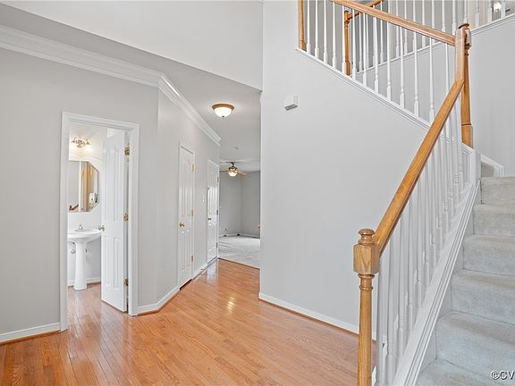 Welcome to 14706 Waters Shore Drive, located in the convenient and highly desirable Edgewater at the Reservoir community! Upon entering this spacious home, you are met with a grand two-story foyer. The formal living and dining rooms boast beautiful hardwood flooring and crown molding, perfect for hosting family gatherings. You will immediately start to enjoy the ease of entertaining. This home's eat-in kitchen flows seamlessly into the family room, with a gas fireplace, and has direct access to the rear deck and patio space. Upstairs, find yourself relaxing in the primary bedroom which features a walk-in closet, an en-suite bathroom with a jetted tub, and an additional unfinished “Harry Potter” closet. Three additional bedrooms and the laundry room finish out the second level. This home also features a walk-up, unfinished, 3rd level attic space, great for storage or a future project! Need your vehicles under the roof? The two-car garage has you covered, and the pedestrian door allows for side entry too. This home is conveniently located within walking distance to the Swift Creek Reservoir, gazebo, dock, and playground. It is also just minutes from local Midlothian shops and restaurants as well as 288 and the Powhite Parkway. The walls in the home were FRESHLY PAINTED in December of 2024, so start 2025 off on the right foot, and come call Waters Shore Drive your new home!