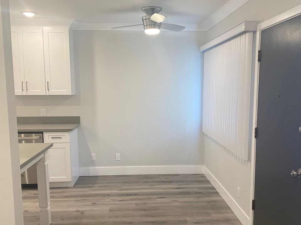 Great location Remodeled 1 BD 1 BTH. Newly painted. Hardwood floors throughout. Tiled flooring in bathroom. Shower Wall Tile. Custom kitchen with quartz countertops. Stainless steel appliances. Dishwasher, range/oven, microwave hood provided. High end light fixtures. Crown and Floor moldings. Ceiling fans. Laundry on-site. Exterior of the property recently painted and updated. 1 parking space. Minimum one year lease. $1,995 Security Deposit O.A.C. 1 Parking Space.