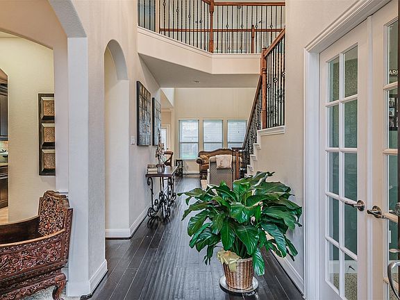 Lots of charm and curb appeal in this stunning Lennar 5 bedroom home. Two bedrooms downstairs, 3 bedrooms upstairs along with large gameroom and huge media room. Granite kitchen counters and granite in master bath. Tumbled stone backsplash, 18" tile in wet areas, wrought iron stairs, two story family room and foyer. Lots of windows to bring in the natural light overlooking the huge backyard with covered patio. Don't delay, see this listing today.