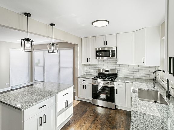 This beautifully updated brick ranch is ready for new owners! The stunning new kitchen boasts quartz countertops, white shaker cabinets, a stylish tile backsplash, a large island, and modern stainless steel appliances. Enjoy all-new flooring throughout, including luxury vinyl plank and plush carpeting. Beautiful refinished hardwood flooring on main level. Key updates include a new 100 amp electric service, a new A/C unit, and upgraded plumbing featuring all new supply lines, waste lines, a water heater, and laundry hookups. Several windows have been updated, and the garage has been freshly painted. The interior showcases all-new paint, fixtures, and lighting, reflecting a modern aesthetic. Renovations were completed with full village permits. Don't miss the opportunity to view the 3-D tour with floor plan and schedule your private showing today!