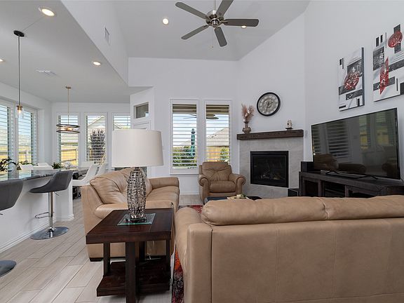 Better than new! This stunning home has been thoughtfully upgraded since its purchase in April 2024, offering exceptional features you won’t find in typical new construction. The kitchen shines with Black Python granite countertops, a new sink, and a touch faucet. A $6,000 custom iron front door creates a grand first impression, while the expanded patio, added trees, and lush backyard landscaping make outdoor living both inviting and practical. Inside, upgraded lighting, plantation shutters and multiple ceiling fans add comfort and style throughout.