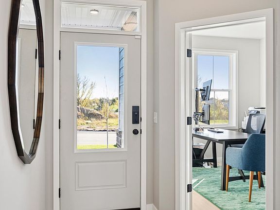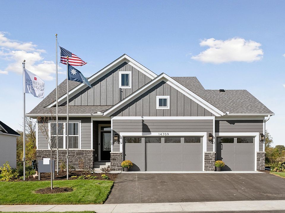 Robert Thomas Homes newest Model! Main floor living with finished basement! This Rambler Plan: The Eveleth features 4 bedrooms! 3 on main floor and 4th at finished Basement with lookout windows, and great backyard backs to wetlands/trees; and landscaping and sod and irrigation system included. Washer and dryer; All kitchen appliances included and Quartz countertops, large kitchen pantry, oversized center island, plus main floor front office/flex room. Come visit our premier location with close proximity to the Mississippi River, neighborhood park with pickleball, playground, trails, and more. And enjoy the private Riverwalk Clubhouse, firepit and pool! See New Home Consultant for more details. ***Prices, square footage, and availability are subject to change without notice. Photos and/or illustrations may not depict actual home plan configuration. Features, materials and finishes shown may contain options that are not included in price.*****