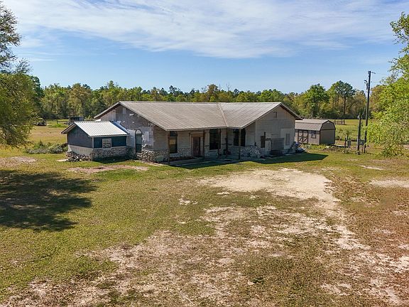 Large, well built home that needs a little TLC. This would be a great home to fix up and live in, or resale. One family owned. 4 large bedrooms and 2.5 bath, and 2 family rooms. Located just 3 miles from Torreya State Park. Much of the acreage is cleared and ready to homestead. Two large sheds convey with the property. As you walk in the entry way room has 13 foot ceilings, with ample room for a large dining space, you are welcomed in with large arched windows allowing in natural sun light. The home has two living spaces, one with a fireplace to be cozy, with a hallway taking you to two additional bedrooms and full bathroom, as well as the large laundry room with shower that has access to the backyard. There are split bedrooms, one to the left of the entry room, and then to the right is a step up to a very large living space, high ceilings, a small office, and the Master Suite. Closets to the ceiling of this 13 ft room, with a large luxury styled bathroom with stand up shower, large bath, double sinks and storage. The home is on concrete foundation, all systems work, and the home did very well through Hurricane Michael in 2018. Video shows in detail what this home can offer. Please schedule a showing to see how amazing this home is. The outside of the home was not able to be finished although there are still some items on the property to help finish the exterior.