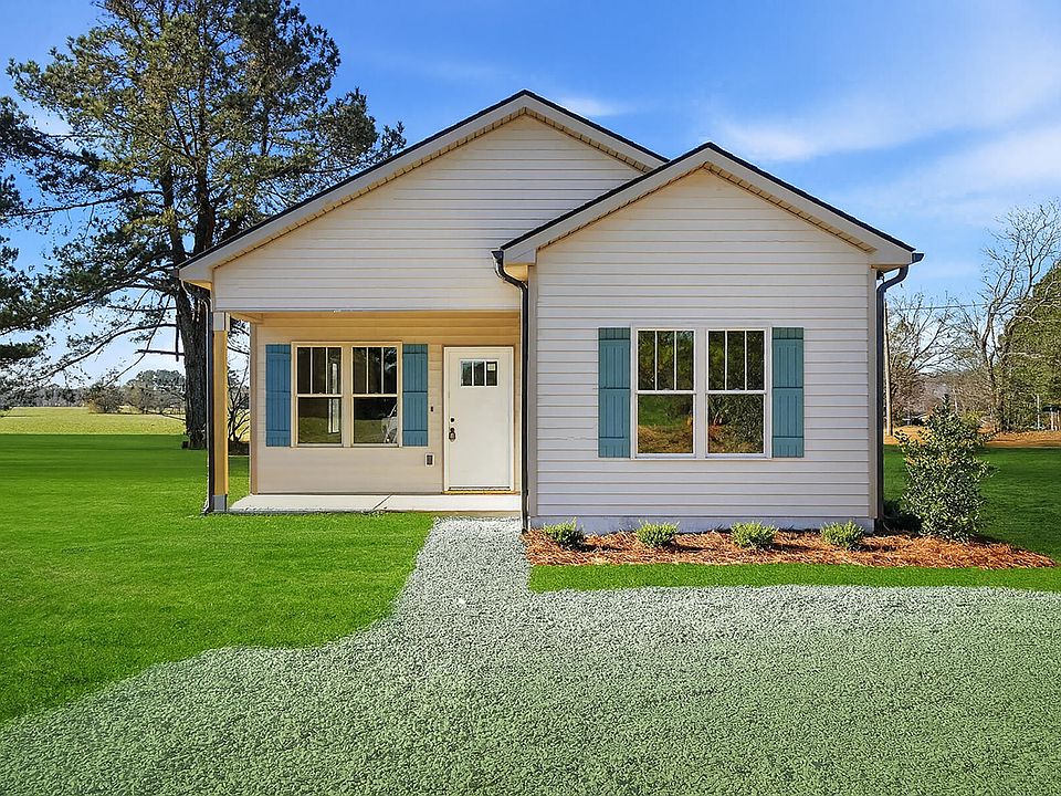This charming 3-bedroom, 2-bathroom residence offers an inviting blend of modern convenience and serene living. Step inside to discover a spacious living room perfect for entertaining . The kitchen has stunning quartz countertops with vinyl flooring & carpet throughout the home. Beautiful master suite featuring a large walk-in closet offering plenty of storage space. Enjoy morning coffees or evening relaxation on the covered porch overlooking the peaceful surroundings. Located in a quiet, peaceful area & in a great location only minutes from 40. Don't miss the opportunity to make this exceptional Benson beauty your forever home