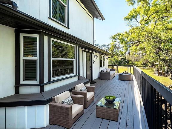 One or more photo(s) has been virtually staged. A private lakefront retreat nestled on 1.8 acres right in the heart of Sarasota! This serene sanctuary provides the perfect blend of seclusion and accessibility, inviting you to escape the hustle and bustle while being close to all the amenities you need. Located west of I-75, near Cattleman Road, this property has 4-5 bedrooms, a den/study, 3 bathrooms, and a detached, climate-controlled 1500 square foot garage that accommodates 4-5 cars, offering endless possibilities. The hobbyist will find it a versatile workshop, while the visionary can adapt it to meet their needs, enhancing its potential and value. The main house has a wraparound porch surrounding the first floor, featuring three French doors blending the indoor and outdoor spaces. A great room combines living and dining areas and boasts clerestory and twin picture windows, two-story ceilings, and a wood-burning fireplace. The kitchen is fully equipped with nearly new stainless-steel appliances from GE. It has ample cabinetry designed in a farmhouse style, complete with stained glass accents. Additionally, there is a built-in pantry and under-stairs storage for even more convenience. A center island on tiled flooring includes a breakfast bar and extra cabinets for added organization. A separate den/study has double pocket door privacy, window bench seating, and direct access to one of two primary bedrooms. This first-floor suite overlooks the lake and has a built-in closet. This wing also includes a flex room that could be converted into a beautiful walk-in dressing closet (refer to the virtually staged photo). The updated bath has room for an enlarged vanity to accommodate double sinks. This area could be transformed into the ideal first-floor Owner’s suite by integrating these rooms with continuity. A landing on the second floor leads to the bonus room, which overlooks the main living area. The primary suite on this floor has been upgraded and features a balcony and a walk-in closet. A stylish barn door separates the en suite bathroom, which includes a free-standing vanity, dual sinks, and a spacious walk-in shower with a glass door. Upstairs is an updated bathroom and two additional bedrooms, each featuring a walk-in closet, a laundry room, and French doors to a balcony. Step onto one of the two decks to experience stunning sunrises over the lake. The lower deck has just been reinforced and refurbished. The house is said to contain a 3-foot concrete block wall and concrete pads supporting steel floors and beams, originally built to accommodate these beams for added structural support. Surrounded by stately oaks on an expansive piece of land, this remarkable home offers plenty of room for outdoor activities and the possibility of adding a pool without any deed restrictions. So, bring your boat and RV! The location is near Detweiler’s Farm Market, UTC shopping, and various dining destinations. It is also close to several county parks, including the Celery Fields, which borders Ackerman Park. This 360+ acre area is well known to locals for its diverse wildlife and wetlands, providing opportunities for nature watching and exploration. Visitors can enjoy activities such as walking along two boardwalks, fishing, and kayaking.
