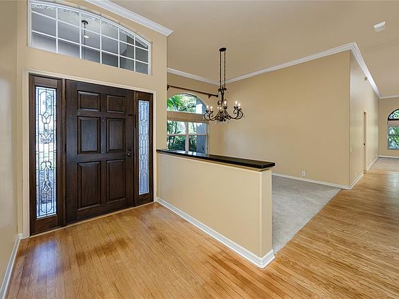 Live the Florida lifestyle in the gated Aberdeen enclave of East Lake Woodlands with this elegant Arthur Rutenberg-built executive home. Located in one of Oldsmar’s most desirable golf and country club communities, this timeless Belleair split floor plan offers 3,140 square feet of thoughtfully designed living space. The home features five bedrooms, three and a half bathrooms, a bonus room, and a spacious three-car garage—ideal for families, multigenerational living, working from home, or simply spreading out in comfort. Inside, you’ll find soaring 11-foot ceilings, abundant natural light, and a versatile triple-split layout. The chef-inspired kitchen boasts wood cabinetry with pull-out drawers, stainless steel appliances, granite countertops, and a built-in wine refrigerator, and it opens directly to the inviting family room with a gas fireplace—perfect for entertaining or relaxing with family. The private primary suite includes a walk-in closet with a custom organizer and sliding glass doors to a secluded patio. The ensuite bath is finished with granite countertops and dual sinks. A guest wing includes three generously sized bedrooms—two of which share a Jack and Jill bathroom—along with a full pool bath. At the front of the home, a fifth bedroom doubles perfectly as a home office with a built-in closet. Step outside to a private backyard oasis featuring a screened and covered paver lanai, a sparkling pool, and lush landscaping that provides privacy and a tranquil setting to enjoy the Florida sunshine year-round. Aberdeen residents can enjoy optional membership at the newly renovated Ardea Country Club, featuring two championship 18-hole golf courses, tennis and pickleball courts, a fitness center, dining, and a resort-style pool. This home is located in a top-rated school district and is just minutes from parks, shopping, restaurants, Lake Tarpon, beautiful Gulf beaches, and Tampa International Airport. Low HOA, no CDD, and located in Flood Zone X. This is a rare opportunity to enjoy luxury living in one of Pinellas County’s premier gated communities. Schedule your private showing today.