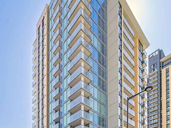 RARELY available perfect floor plan boasting 2-bedroom, 2-bathroom with a spacious den, perfect for a third bedroom or home office. Spanning 935 sqft, the unit boasts a functional layout complemented by a 170 sqft outdoor balcony. Enjoy breathtaking N/W views of the North Shore mountains, Grouse Mountain Resort, and downtown Vancouver. This condo is equipped with air conditioning, in-unit washer/dryer, and a full kitchen featuring stainless steel Fisher & Paykel appliances, quartz countertops, and an island. Residents have access to a brand new public recreation center next door and a variety of building amenities, including a gym, sauna, steam room, and party room. You'll be just steps away from North Shore biking and walking trails. The unit includes one EV parking and one locker.