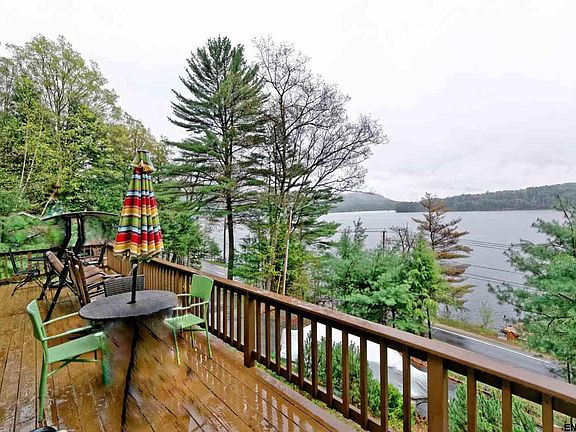 Welcome Home! Enjoy stunning Great Sacandaga Lake views year-round from all 3 floors of this gorgeous 4-bed/2.5 bath contemporary.Then add 100' of private lake frontage & brand new dock,finished bsmt w/patio and 2 hand-built sheds. Both upstairs BRs have vaulted oak ceilings, w/the Master hosting a juliet balcony. Updated kitchen with granite & ss appliances.Beautiful woodwork & HW floors, incredible character & charm in almost 3,000 sf of living space. Every detail of this lovingly maintained home shines!