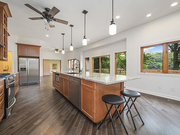 HAVE YOU ALWAYS WANTED TO LIVE ON THE RIVER? HERE IS YOUR CHANCE! Beautifully remodeled home with 167 feet of river frontage on the Rock River. As you enter the home you will find absolutely stunning, new 3/4 solid hickory hardwood floors, freshly painted walls, and vibrant white trim. The kitchen has been completely remodeled including a new 12-foot granite island overlooking the Rock River, stainless steel appliances, new maple spice cabinets, and a large pantry. Grand master bedroom with a large walk-in closet, a complete remodeled bathroom featuring a double vanity, tub, and tile shower. Off of the beautiful, remodeled kitchen there is also a large deck, a formal dining room, as well as a family room with a bar area. The main level has endless amounts of space for entertainment. First floor laundry with additional laundry area available downstairs. The lower level is fully finished with 2 bedrooms and 2 bathrooms, family room and large bonus room. New roof and gutters (2022), new carpeting in the lower level, new light fixtures throughout, new furnace and AC (2021). Two car garage attached as well as a new 20'x 12' storage shed (2021). This property is a must see!