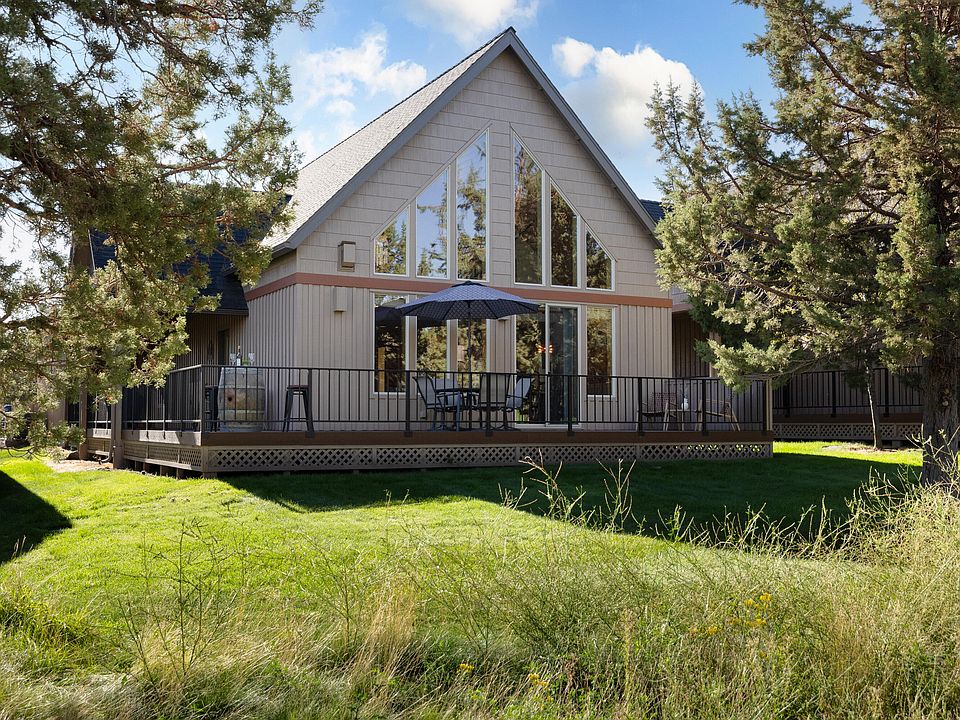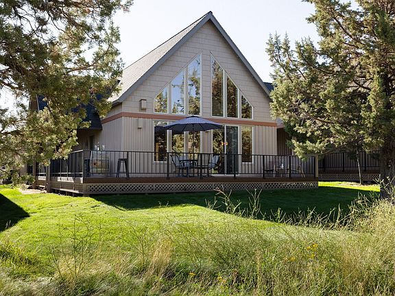 Welcome to your Eagle Crest escape! Overlooking the 18th fairway of the Ridge Course, this furnished chalet combines comfort, style, and resort living. The open floor plan with loft creates a bright and airy feel, while expansive windows capture sweeping golf course and sunset views. Gather around the stunning floor-to-ceiling stone fireplace after a day of adventure, or entertain from the kitchen with granite counters, breakfast nook, and large pantry. Recent updates include all new main-level flooring, a new Trex deck, and a heat pump for year-round comfort. With a rare 2-car garage and furnishings included, this home is truly turn-key. Owners and guests enjoy pools, pickleball, tennis, spa, gym, miles of trails, and three golf courses! All just steps away. Eligible for short-term rental use, this chalet offers the perfect blend of vacation retreat, investment property, or full-time residence.