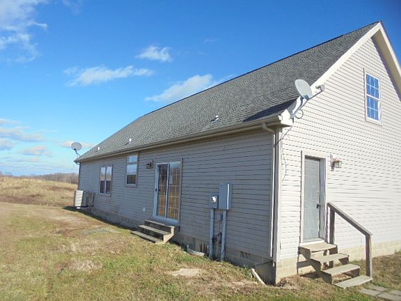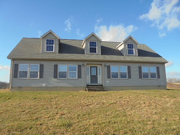 Three bedroom cape cod home with interior stairway to the attic. Attic space can be finished into additional living space. Large kitchen with lots of cupboards and counter space with dining area plus a formal dining room. Laundry room/mud room is off the dining area. Double doors lead to a bedroom or this could be your home office. Two full bathrooms. Needs some minor TLC. This home is waiting for a new owner and sits on a hill on 5 acres which affords privacy and also gorgeous views from almost every window.