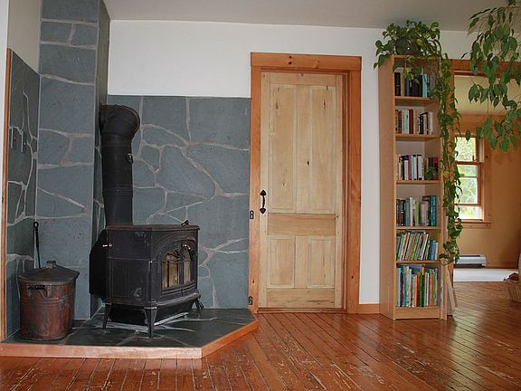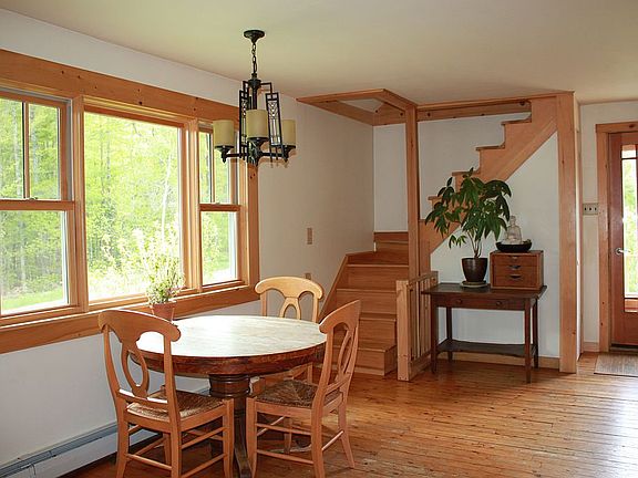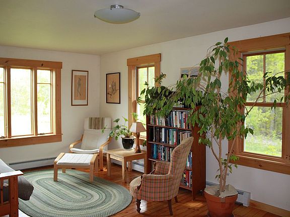 Artisan home on 22 beautiful acres, quiet and filled with light. 3 Bedrooms, 1 bath Open floor plan with an upstairs studio space Multiple heat sources (oil furnace, hot water baseboard, Vermont Castings woodstove) Well water and private septic Custom carpentry Wood floors Scenic 22-acre property 6 acres of open field with southern exposure 16 acres of mixed hardwood forest Spring fed stream Organic garden beds and perennial herb gardens Blueberries, elderberries, currents and fruit trees Chicken coop and woodshed Located in the heart of central Vermont, 30 minutes from Montpelier and South Royalton, and an hour from Burlington, Stowe, and Hanover, NH, this beautiful property is nestled among large tracts of well-tended forest, full of trails for hiking and cross-country skiing, and looks out on the first branch of the White River. It is a wonderful, safe, and supportive neighborhood. A recent weatherization and energy efficiency overhaul includes new Energy Star windows, closed cell insulation professionally installed in the roof, gables, and sills. Currently the house is rated within the top 1% of homes for air tightness, making this house warm in the winter and cool in the summer. Other home improvements include: New cedar siding New wood floors in the bedroom, mudroom and upstairs studio New Energy Star appliances (refrigerator, dishwasher, washing machine) Mudroom addition with handcrafted mahogany door and stained glass windows.