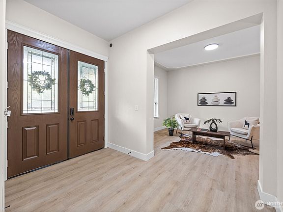 Escape to peaceful living on 5 private acres in quiet Yelm. This inviting rambler has been beautifully refreshed with LVP flooring, fresh paint, a new water heater & more! Bright open floor plan is perfect for entertaining. Septic, well, furnace, & roof have all been recently serviced for worry-free living. Outside, enjoy a freshly landscaped yard, brand new driveway, welcoming covered front porch, & a huge covered back deck perfect for year-round relaxation. Thoughtful layout features an office & bonus room, making space for work, hobbies, & comfort. Storage throughout plus an extra large garage! A rare opportunity to own a beautifully updated home in the perfect location for rural tranquility.