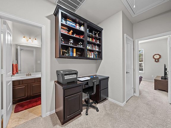 Beautifully updated one-story home on a quiet cul-de-sac in Fairfield! This 3-bedroom, 2-bath brick home features an open, light-filled layout with a spacious living room, crown molding, gas fireplace, and large windows. The formal dining room showcases rich wood floors and lovely crown molding with chair rail molding as well, while the kitchen offers granite countertops, dark wood cabinetry, stainless steel appliances, and an open flow to the breakfast nook. The primary suite provides a relaxing retreat with crown molding, ceiling fan for those warm Texas nights, and a luxurious ensuite bath with dual vanities, walk-in shower, and soaking tub. A private home office and fenced backyard with covered patio complete this home. Zoned to top-rated CFISD schools and just minutes from parks, pools, and trails—don’t miss this one!