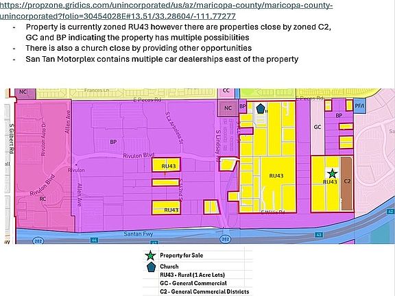 Incredible opportunity to own a rare 10 Acre parcel of flat, buildable land in highly desirable location of Gilbert. The property is completely fenced with No HOA and has access to shared well and flood irrigation. There are many zoning possibilities with this property. The property is currently zoned RU43 with the ability to subdivide into 1-acre minimum parcels. This property is perfect for a custom home builder. To the east of the property there is another 10 acre parcel that is zoned C2 (General Commercial) and to the east of it is the San Tan Motorplex auto-mall. The Loop 202 is south of the property with easy On/Off access from Lindsey Road. To the north and west, there are properties zoned Business Park, General Commercial and RU43. According to the Gilbert 2020 Development Plan, the primary focus of economic growth within this area is general office, business park and light industrial land users that have a need for quick freeway access or proximity to the airpark. There is a future Collector road in the Gilbert plan that will cross the property on the north side connecting Lindsey road and the San Tan Motorplex. The increase in traffic and visibility make this property perfect for so many opportunities. This would be great opportunity for freestanding retail, office, commercial uses like Loft-Residential, single or multi-story medical, professional, general or service-type office, light industrial or church. Don't miss your chance to invest in a prime piece of land with endless potential.