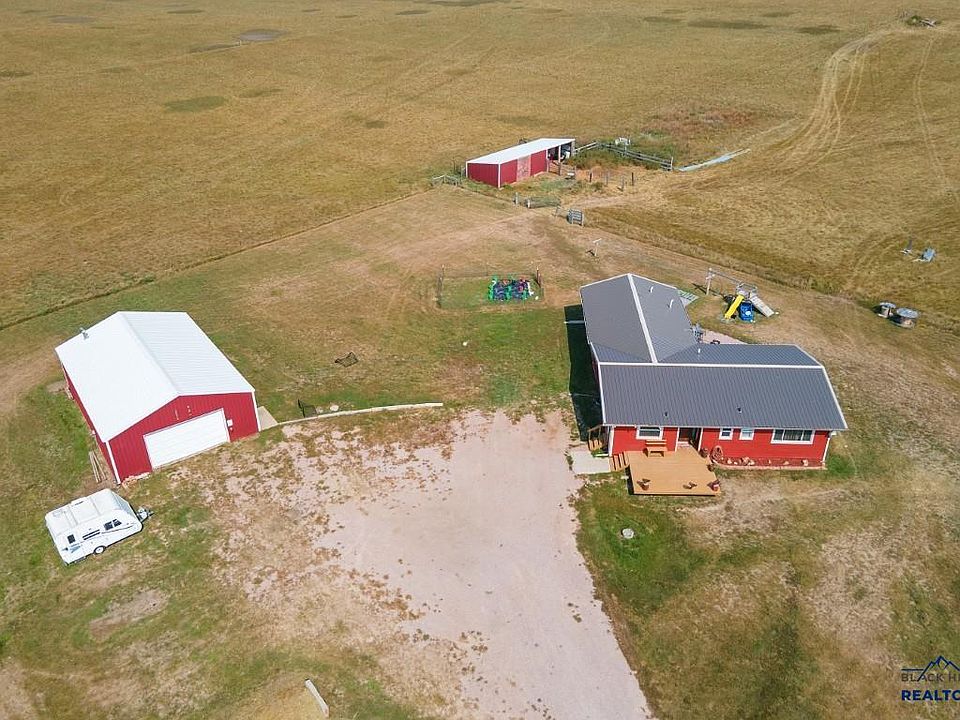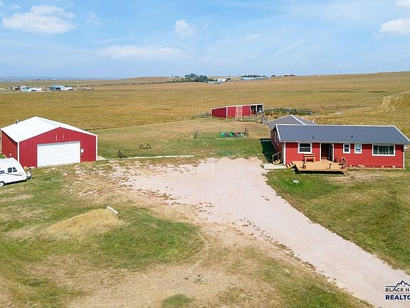 MUST SEE TV! https://drive.google.com/file/d/134gDuMr87uPlpaUqh16rZS4tsjtYABav/view . Welcome to 14712 Halter Court, Piedmont, SD. Nearly 10 acres of privacy and views at the end of a cul-de-sac! This 4-bed, 3-bath home includes two en-suite bathrooms, spacious living areas, and flexible spaces ideal for multi-generational living. Sellers say sunsets from the front deck are unmatched, stars shine bright at night, and northern lights frequently dance across the sky. The secluded back patio offers peace and privacy—no neighbors in sight. Covenants and acreage allow owners to enjoy a gun range and golf practice area on their property, making recreation convenient and fun. House has all new windows, LP Smart Side Diamond coat siding and house, garage and barn have metal roofs. The oversized insulated garage is a standout: finished with plywood walls, plenty of outlets, large enough to fit vehicles, toys, and equipment of all sizes with a 220 RV hookup on outside and 220 on inside for welders. A small barn adds additional storage and function in addition there is a pig and chicken enclosure and large dog kennel. Enjoy country living with very little traffic or dust, while still being close to town. This property offers the rare blend of space, recreation, and comfort—don’t miss it! Please see home virtual tour at https://my.matterport.com/show/?m=NkCSqYh1a5X&mls=1