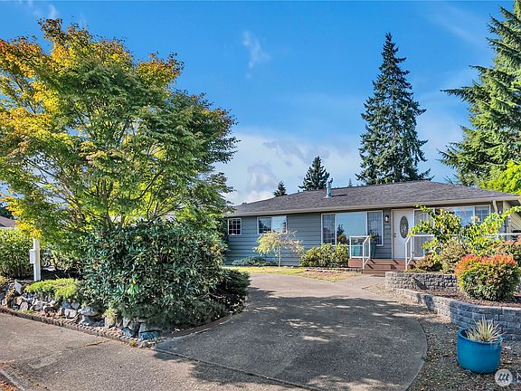 Beautifully remodeled, this one-level designer home combines modern style with timeless appeal. The front porch overlooks the landscaped yard w/partial Cascade views. Inside, the light-filled living rm w/gas FP features custom built-ins & a large picture window. Chef’s kitchen showcases quartz counters, designer tile backsplash, island w/microwave drawer, KUCHT gas range w/griddle & bar/coffee station. Dining area includes built-in bench seating, and 4 bdrms offer flexibility for work or guests. Set on a generous, level ¼ acre lot w/fenced backyard, deck, patio, hot tub, fruit trees & garden beds, plus DADU/ADU potential (buyer to verify). Separate laundry, circular driveway, tankless water heater, and A/C, complete this exceptional home.