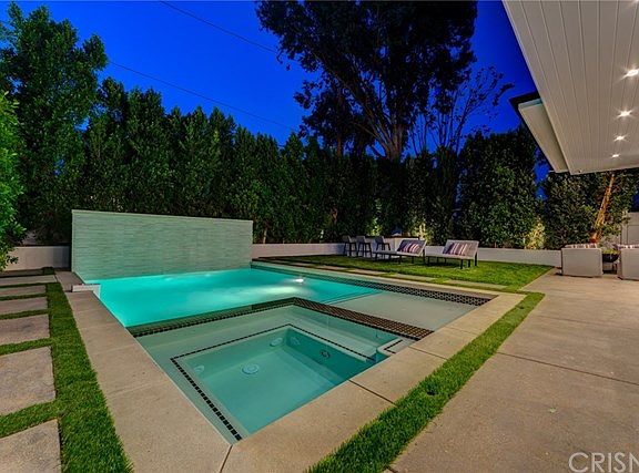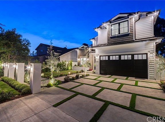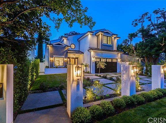 Stunning new construction modern farmhouse with soaring ceilings, wide plank hardwood floors, paneled walls, and crisp white crown molding throughout. Foyer opens directly to polished living room with large windows and fireplace. Gourmet Chefs kitchen boasts quartz counter tops, Center Island with prep sink and breakfast bar, farm sink that sits in front of bi-fold windows, walk-in pantry, and stainless steel appliances. An Elegant family room complete with custom built-ins, surround sound, and floor to ceiling pocket glass doors. Upstairs we have a lavish master retreat with vaulted ceilings, private balcony, fireplace, two walk-in closets, and master bathroom with dual vanity, soaking tub, and massive shower. Three additional upstairs bedrooms feature en-suite baths. Entertain year-round in this incredible back yard featuring sparkling pool & spa with waterfall, covered patio with, built-in barbecue, and a spacious grassy lawn. Additional luxuries include outdoor camera system, indoor/outdoor surround sound, additional downstairs en-suite bedroom, and office. A luxury life style close to Sherman Oaks shops, dining and more.