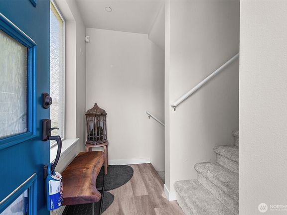 A spacious modern 4-bedroom, 3-bath end-unit townhouse offers the perfect blend of comfort and convenience. Built in 2019 and backed by a builder structural warranty, this home features an open-concept main floor with wide-plank flooring, abundant natural light, and a stylish kitchen complete with quartz countertops, stainless steel appliances, and a sleek tile backsplash. On the top floor is your private retreat, featuring a generous primary suite. Admire the gorgeous territorial view. Outside, enjoy a cozy patio perfect for relaxing or entertaining, plus a 2-car garage and plenty of storage. With prime access to transit, I-5, I-405, and Alderwood Mall, this home truly has it all. Garden bed and planting area. Land under unit is owned.