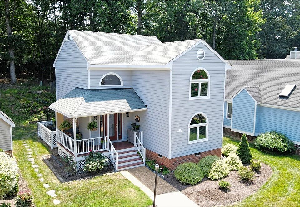 Bring your kayak and enjoy the last days of summer in your own move-in ready home on the Swift Creek Reservoir! Just steps away from the Woodlake Boat Dock, Pool, Playground, Walking Trails, Workout Facilities, Clubhouse, Fishing, Swimming, Boating & all the fun on the water. Spend more time relaxing and doing what you love—Boyces Cove covers yard maintenance & limited exterior upkeep! Zoned to Cosby HS & a short drive to all the amenities of Hull Street, this home has it all. You'll be welcomed by the inviting front country porch, perfect for morning coffee or relaxing in the evenings, while enjoying the beautifully landscaped yard with rose bushes, ornamental shrubs & a slate paver walkway leading to the back deck. Inside, the first-floor primary bedroom features hardwood floors, a walk-in closet w/ built-in organizers & direct access to a fully renovated bathroom with granite countertops, LVP flooring & a tub/shower w/ tile surround. Down the hall, the spacious family room is filled with natural light from large windows & includes a woodburning fireplace & wood flooring throughout. The kitchen offers stainless steel appliances including a 2024 induction oven with convection & built-in air fryer, Corian countertops, pantry, an eat-in area with pendant lighting & extra storage closet. A sliding glass door opens to the freshly painted 16x18 rear deck with a sitting area & attached utility closet. A privacy fence flanks each side of the deck & two gates make the space secure for pets. Upstairs, you'll find three additional bedrooms, one with a walk-in closet & half-moon window, plus another updated bathroom with quartz counters, LVP flooring & a tiled tub/shower. The second-floor laundry room has hookups for stacked or side-by-side units. Recent updates include bathroom renovations in 2019, picture windows in 2020, ductwork cleaned & sealed, encapsulated crawlspace in 2023, stove & microwave in 2024 & washer/dryer in 2020. Don’t miss the chance to make it yours!