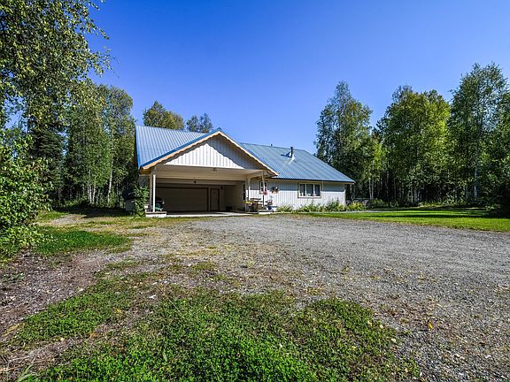 Must see home in very private setting. Open & bright. Vaulted ceiling. Laminate flrng. Large room above garage may be used for family rm or master bdrm. Laundry rm. 3 full bathrms. Oversized garage with additional covered carport. Partial paved around house. Fenced Yard. Basketball area. Separate patio. wired for hottub. Convenient location near elementary school, Willow Center and Deshka landing