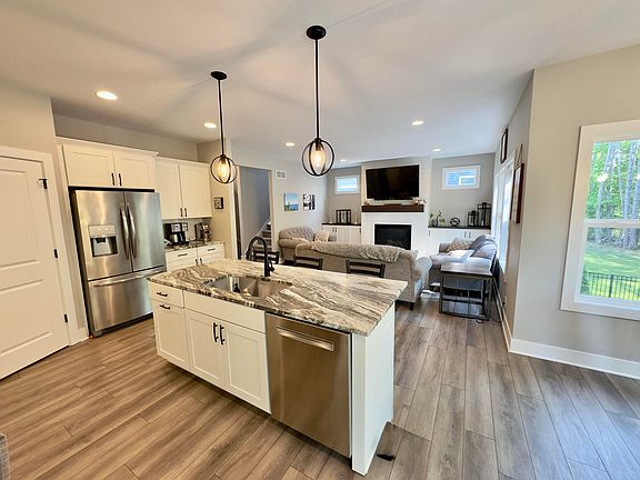 Welcome to your nearly-new 4 bedroom, 2.5 bath oasis. Step inside to an inviting open floor plan, where the kitchen and living room, featuring a stylish fireplace, create a perfect gathering space. The kitchen has plenty of seating at the snack bar, or there's room in the dining area overlooking the private back yard & small creek. You'll also enjoy the convenience of 2 pantries!! Up-stairs, you'll find four generous bedrooms, including a private primary suite, and a dedicated laundry room. The lower level offers tremendous potential, already plumbed for a future full bathroom and awaiting your custom finishes. Enjoy the fenced backyard, complete with a fantastic hot tub that stays with the home, and the serene backdrop of the little creek. Located adjacent to the high school, and just 3 minutes from the elementary school, 5 minutes from the middle school, and a quick 16 minute drive to the stunning Lake Michigan shoreline. Don't miss the chance to own this fantastic property!