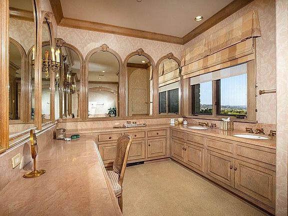 Step into a world of elegance at this grand 5-bedroom, 5 full-bathroom, and 3 half-bathroom estate, where luxury meets comfort in a breathtaking setting. Designed for the most sophisticated guests, this single-story home boasts a resort-style backyard featuring a large pool, spa, and expansive BBQ area, all surrounded by lush greenery and stunning mountain views. Whether you're lounging by the water, enjoying a sunset dinner, or gathering in the shaded outdoor dining spaces, every moment here is pure indulgence. Inside, the grandeur continues with an exquisite bar area, a formal dining table for 12, and a second dining table with seating for 7. The stunning open-concept kitchen features an island, perfect for casual dining or meal prep. The expansive living room with a cozy fireplace flows seamlessly into the dining area, offering ample plush seating for entertaining. A private office with a desk and lounge seating provides the perfect workspace, while the wine cellar and spacious bedrooms with fireplaces add to the home's sophistication. The primary bathroom is a retreat of its own, featuring large windows that showcase breathtaking views while filling the space with natural light. A beautifully designed vanity area and high-end finishes create a serene and refreshing ambiance, perfect for starting or ending your day in luxury. The home features a grand driveway with a roundabout leading to the front entrance, providing ample parking. Guests have access to the 3-car garage, as well as additional driveway and street parking for convenience. Sleeping accommodations include four bedrooms, each with a king bed, and a fifth bedroom with a queen sofa sleeper, ensuring comfort for up to 10 guests. This estate also features five full bathrooms and three half bathrooms, ensuring ultimate privacy and convenience for all. Additional amenities include a washer and dryer, pet-friendly accommodations (fees apply), and the option to heat the pool for $150 per day. With a 30-night minimum stay required, this estate is perfect for extended luxury getaways. A true sanctuary, this home offers a refined yet inviting ambiance, making it the perfect retreat for those seeking the finest in luxury living. Sleeping Accommodations (Maximum Occupancy 10): Bedroom 1 - 1 King bed Bedroom 2 - 1 King bed Bedroom 3 - 1 King bed Bedroom 4 - 1 King bed Bedroom 5 - 1 Queen sofa sleeper. There are 5 full bathrooms and 3 half bathrooms.