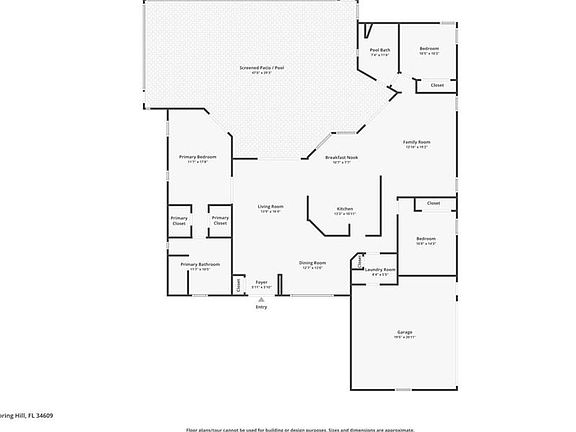Are you looking for a truly move in ready pool home? Where should I begin with this beautiful home, the upgraded kitchen with soft close cabinets, the updated primary bathroom with custom cabinetry, or the salt water pool with a waterfall? This 3 bedroom, 2 bathroom home offers a split floorplan with updates throughout. As you enter the double front doors, you are greeted with a living room and dining area with luxury vinyl flooring. The primary bedroom is on the left through a set of French doors and has 2 walk in closets. The primary bathroom has been updated with a large walk in shower, double vanity, with floor to ceiling side cabinets. The upgraded kitchen offers soft close solid wood cabinets with granite countertops and stainless steel appliances. Both guest bedrooms offer built in closets and new light flooring. Through the sliding glass doors you have a screened in salt water pool with a waterfall feature. The pavered patio area also covered area with a small cooking area. The backyard is completely fenced in with vinyl fencing and a shed for extra storage. This home has a new water softener as well. This home is minutes from a nearby Publix, plus ease of access to the Suncoast Parkway for connections to the greater Tampa area.