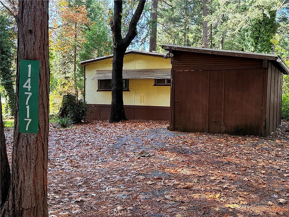 Outside, there’s a small single-car garage—best suited for a compact vehicle or use as additional storage or a workshop space.