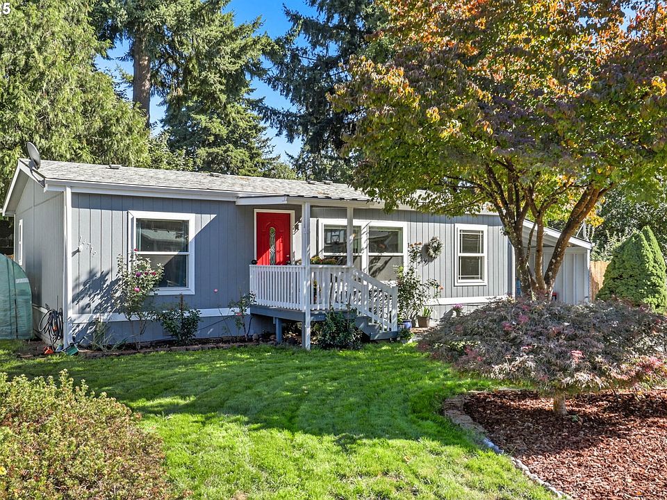 Located at the end of a quiet cul-de-sac, this beautifully updated home offers both privacy and charm, along with a spacious yard that’s hard to come by. Step inside to discover a bright and inviting 3-bedroom, 2-bath layout with vaulted ceilings, light hardwood floors, and an open design filled with natural light. The kitchen features Whirlpool appliances, mahogany cabinets, and a stylish tile backsplash. The spacious primary suite includes a walk-in closet and a remodeled bath with jetted tub, full tile surround, and updated fixtures. The backyard is designed for relaxation and fun: enjoy evenings on the expansive redwood deck, soak in the SaluSpa hot tub, or tend to the greenhouse and garden space. Bamboo privacy screens and fencing create a tranquil retreat.Recent updates bring peace of mind, including a newer roof with transferable warranty, energy-efficient windows, fresh interior paint, and a new hot water heater. Located just steps from Tiger Tree Park and minutes to shopping, dining, and schools, this move-in-ready home blends comfort and convenience with a truly special setting. With no HOA and one of the lowest space rents in all of Clark County, this home is a rare find. Schedule your showing today!