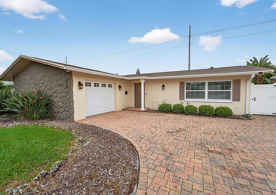 Welcome home to this beautifully renovated 2-bedroom, 2-bathroom home with a spacious garage, located on a quiet street just 15 minutes from Clearwater Beach and minutes from charming Downtown Dunedin. Inside, you'll find a bright and open layout featuring a newly remodeled kitchen with a large island offering bar seating, stainless steel appliances, generous cabinet space, and a reverse osmosis water filtration system. The home also includes a water softener for added comfort! Both bathrooms have been tastefully updated, and new luxury vinyl plank flooring runs throughout the home. Energy-efficient windows and sliding glass doors help reduce monthly utility costs while allowing natural light to flow in. The primary suite offers ample closet space with custom organizers, and ceiling fans are installed the the bedrooms for year-round comfort. Step outside to enjoy a spacious screened-in lanai, perfect for relaxing or entertaining. The fully fenced backyard features lush sod and mature fruit trees, offering privacy and tranquility in a garden-like setting. This move-in-ready home is a perfect combination of style, comfort, and location. $50 application fee per adult. $100 admin fee due after approval. Security deposit equal to 1 month's rent. Renter's insurance required. Utilities are paid by tenant. Lawn care is provided by owner. Call, text, or email to schedule your showing!