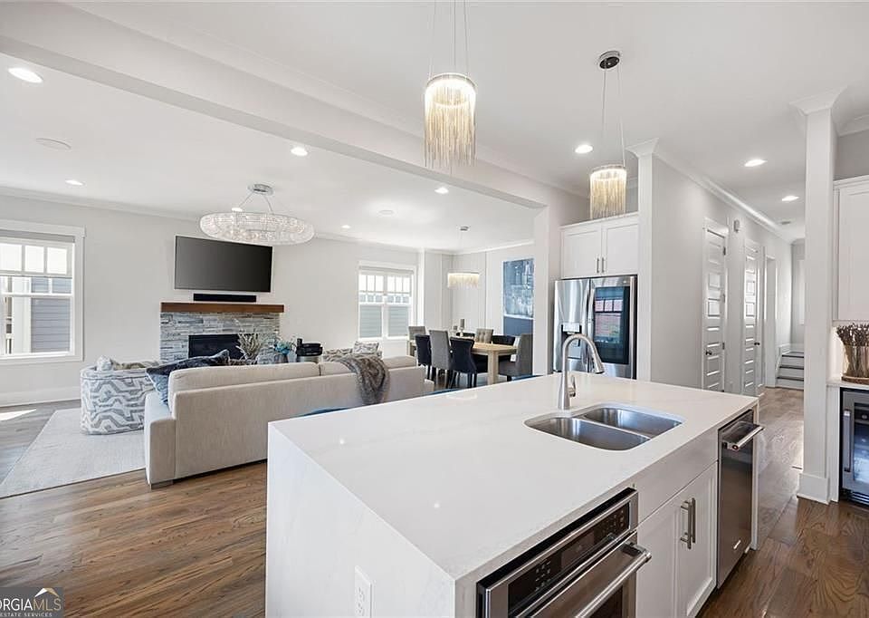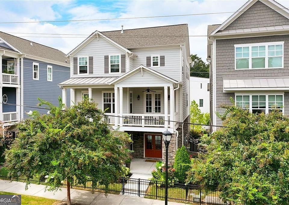 Better Than New - Upgraded Luxury in Prime West Midtown Location with BeltLine Access. This exceptional 5-bedroom, 4-bath Maya floorplan in West Town stands apart from new construction with extensive builder and post-close upgrades, designer finishes, and thoughtful enhancements throughout. Located just steps from the BeltLine and the heart of West Midtown, this three-level home blends modern sophistication with move-in-ready comfort. From the charming fenced front yard and covered front porch to the impressive 8' double doors, the curb appeal is immediate. Inside, you'll find soaring 10' ceilings, wide-plank hardwoods, and premium window shades that enhance the light-filled, open-concept layout. The entry level features a spacious foyer and a flexible guest suite with en-suite bath, surround sound, and decorative millwork-perfect as a bedroom, media room, or private office. The main living level showcases a chef's kitchen with waterfall-edge quartz island, white cabinetry, industrial-grade KitchenAid appliances, a walk-in custom pantry, soft-close system, cabinets with pull-out drawers, and a built-in wine cooler. The adjacent dining area features a designer accent wall and flows into the living room with a fireplace and French doors that open to a large deck with city views. A secondary bedroom and full bath are also located on this level, offering flexible living arrangements. Upstairs, the private primary suite offers tray ceilings, and a spa-inspired bathroom complete with an oversized soaking tub, frameless glass shower, dual quartz vanity, and fully customized walk-in closet. Two additional bedrooms share a stylish Jack-and-Jill bath with double vanity and separate shower, combining convenience and privacy. Additional upgrades include an elevator-ready layout with finished office spaces in the elevator shafts, designer lighting throughout (including Restoration Hardware fixtures), custom built-ins in the laundry room, frameless glass tub enclosures, and beautifully landscaped outdoor spaces-all features that elevate this home above neighboring new construction. Perfectly situated in one of Atlanta's most walkable and vibrant communities, this home offers exceptional style, space, and value in one of the city's most desirable urban neighborhoods.